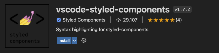 3. 백틱(``)으로 감싸서 스타일시트 작성import styled from 'styled-components'; const Button = styled.button` display: block; padding: 6px 10px; color: #fff; font-size: 18px; border-radius: 3px; background-color: crimson; border: 0; `; function App() { return ( <div> <Button>나는 버튼!</Button> </div> ); } export default App;TIP. styled-components 내에서 emmet을 쓰고 싶다면 vscode-styled-components 을 설치합니다.