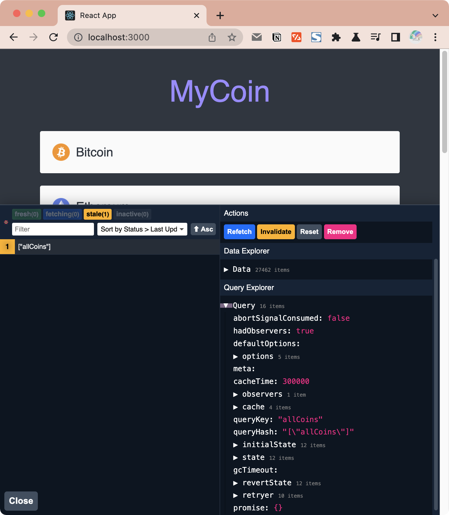 그럼 기존에 만들어뒀던 loading state를 isLoading으로, coin state를 data로 대체할 수 있겠네요.