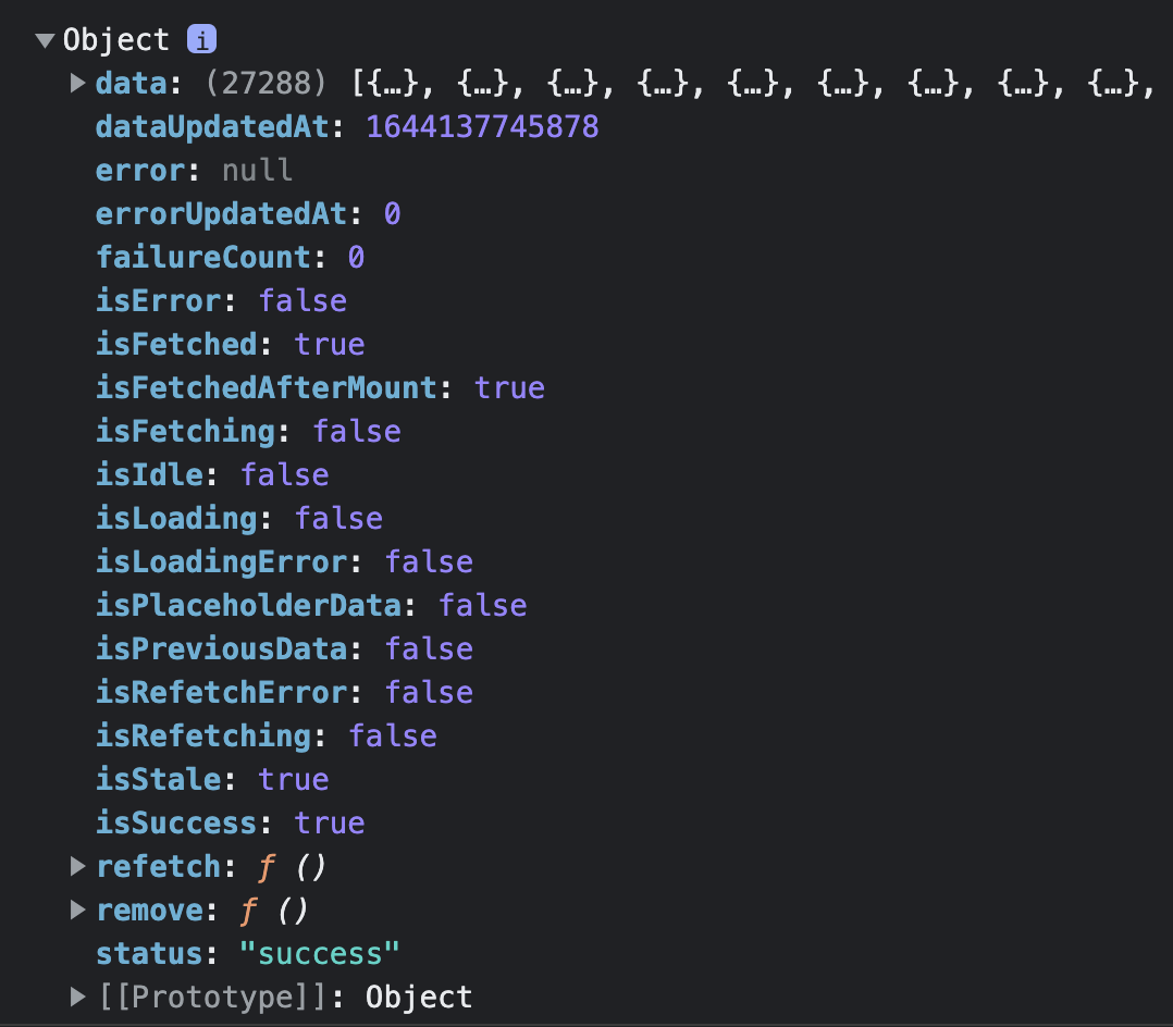 useQuery의 리턴값은 쿼리에 대한 정보를 담고 있어요.