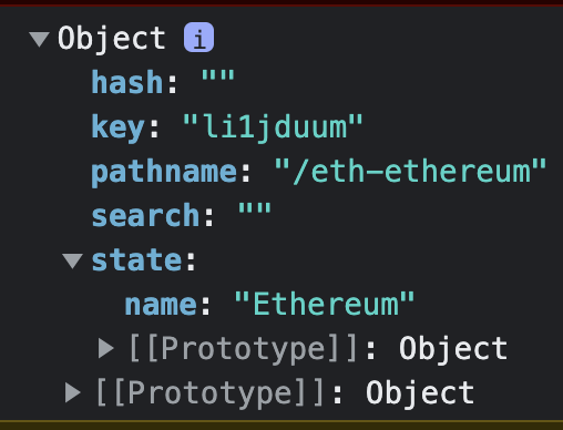 <Link to={`/${coin.id}`} state={{ name: coin.name }}></Link>이제 <Coin/>에서는 useLocation()으로 Location Object에 접근하면 됩니다.
