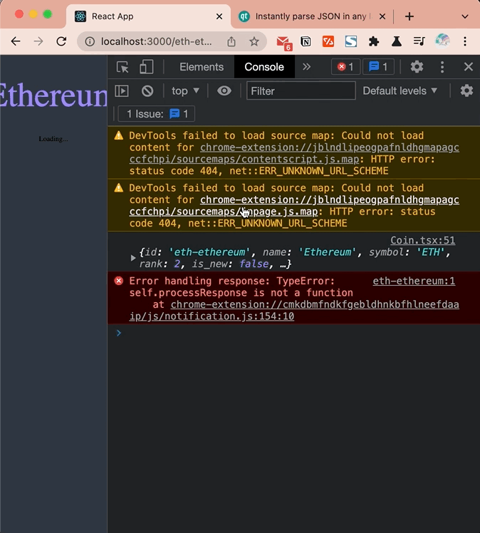 a?.b에서 a가undefined또는null이면 평가를 멈추고undefined를 반환합니다. 이때 a가 선언되어 있지 않으면 에러가 발생합니다.이제 세부 코인 정보를 불러옵니다.