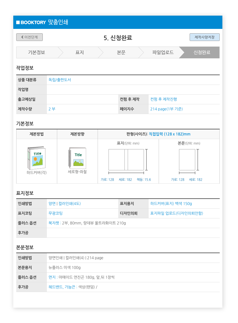제본처에서 제공하는 안내사항이 있다면 그에 맞춰 작업합니다. (출처: 북토리)