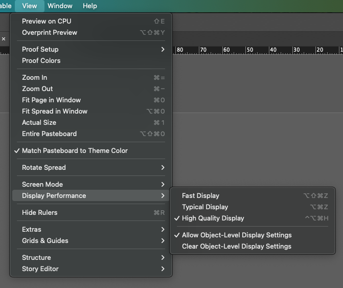 - 작업 성능을 높이려면 Display Performance에서 이미지 화질 변경 가능