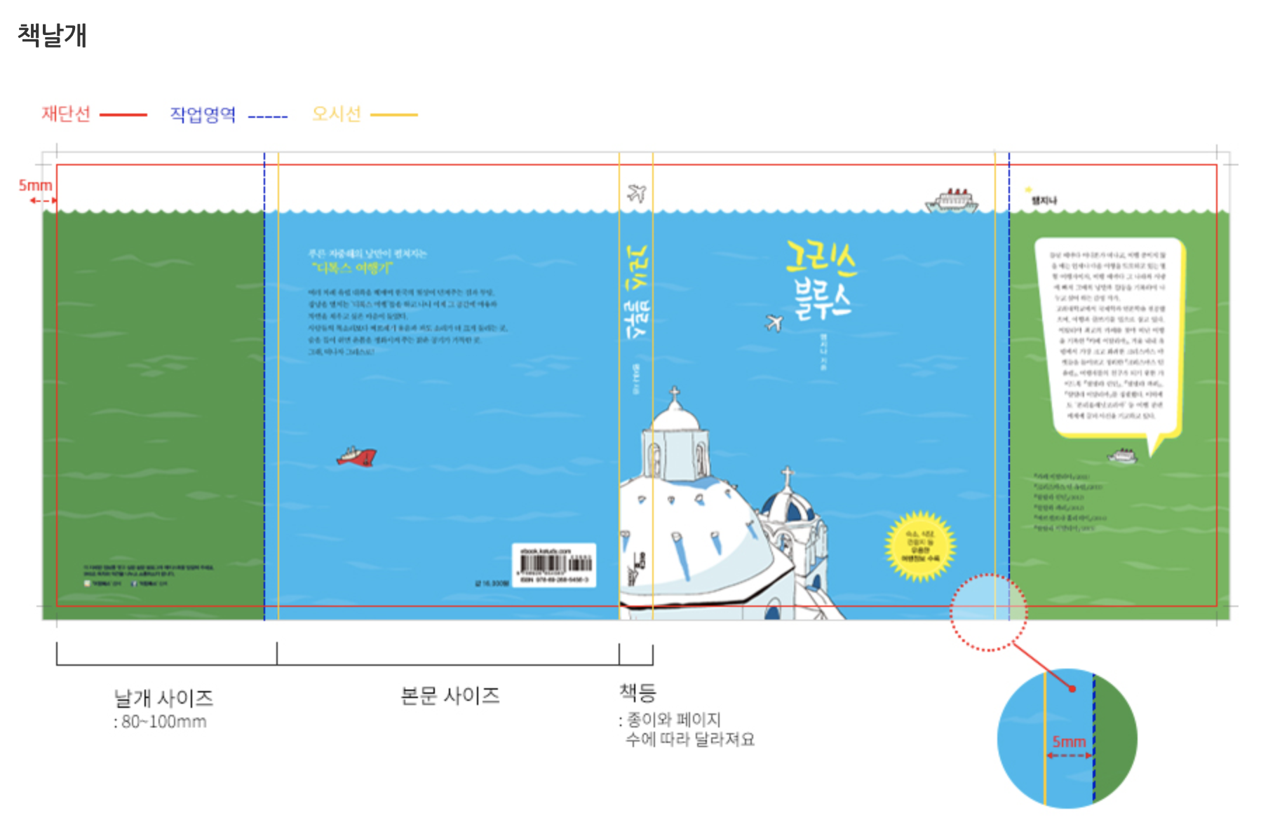 - 이때 여백에는 앞표지의 내용이 들어가야 합니다.추가로, 어도비 일러스트레이터로 작업할 경우 아래 사항도 참고하세요.