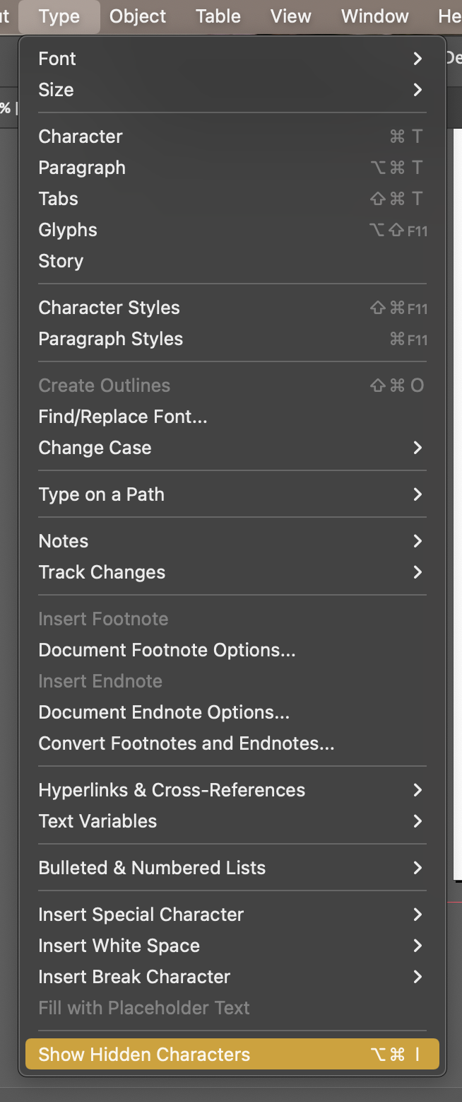 - Type - Show Hidden Chracters로 줄바꿈 부호 표시