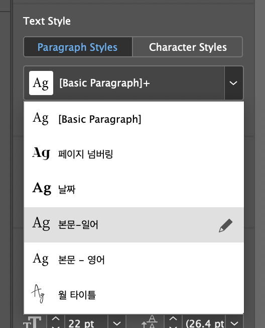 - 이 단축키는 Paragraph Style 창이 켜 있어야 먹는 듯?!