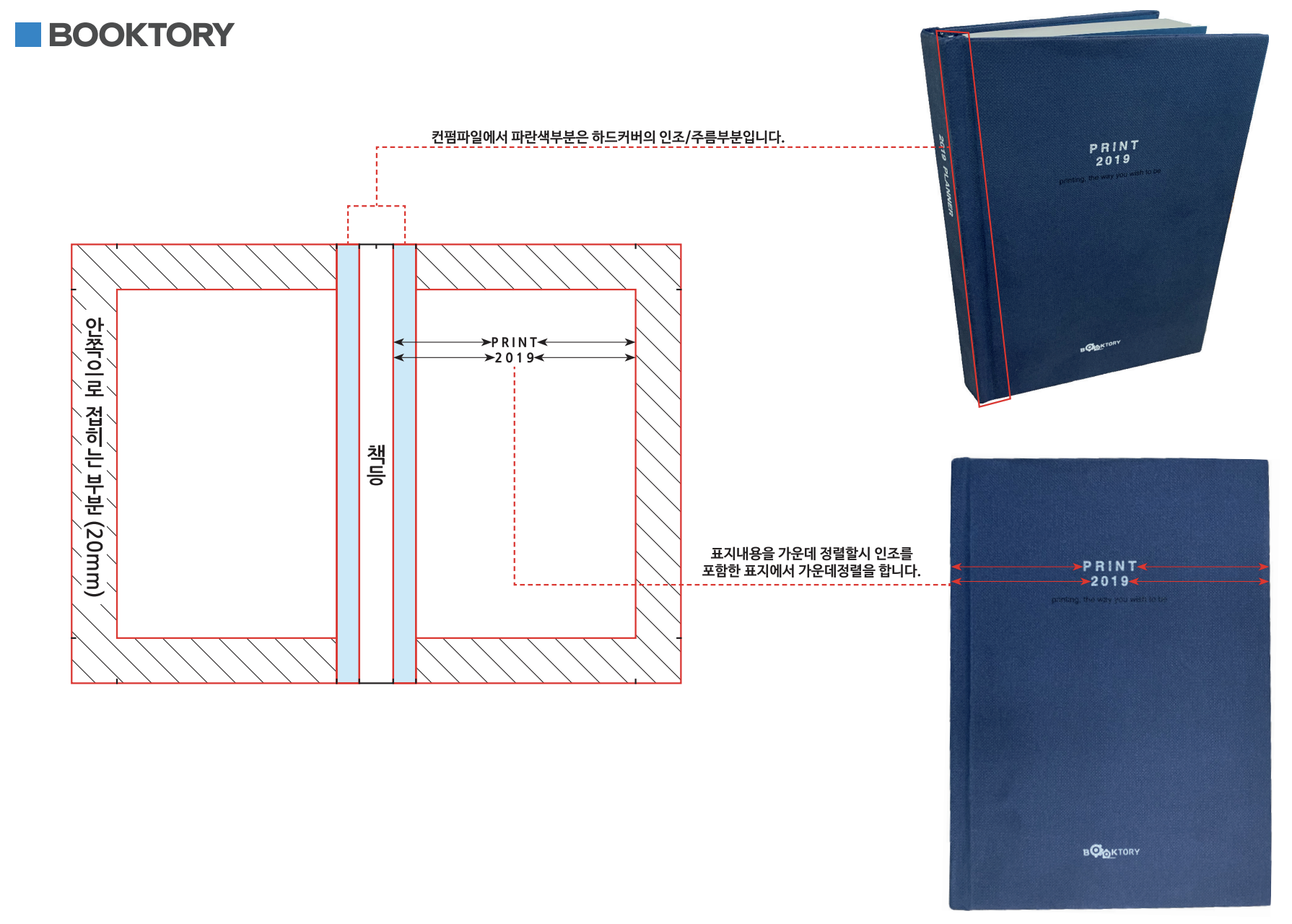 특히, 하드커버의 표지는 접어서 붙이는 방식이기 때문에 표지의 여백이 더 커야 해요. (여분 20mm)
