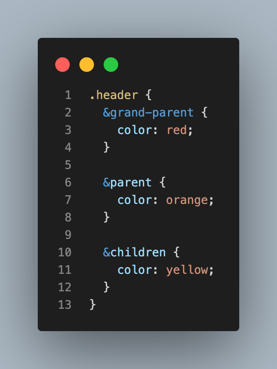 &하나만으로 뚝딱 대체할 수 있습니다.특히 부모선택자의 이름을 계속해서 가져다 쓰는 BEM 방법론에 찰떡이죠.