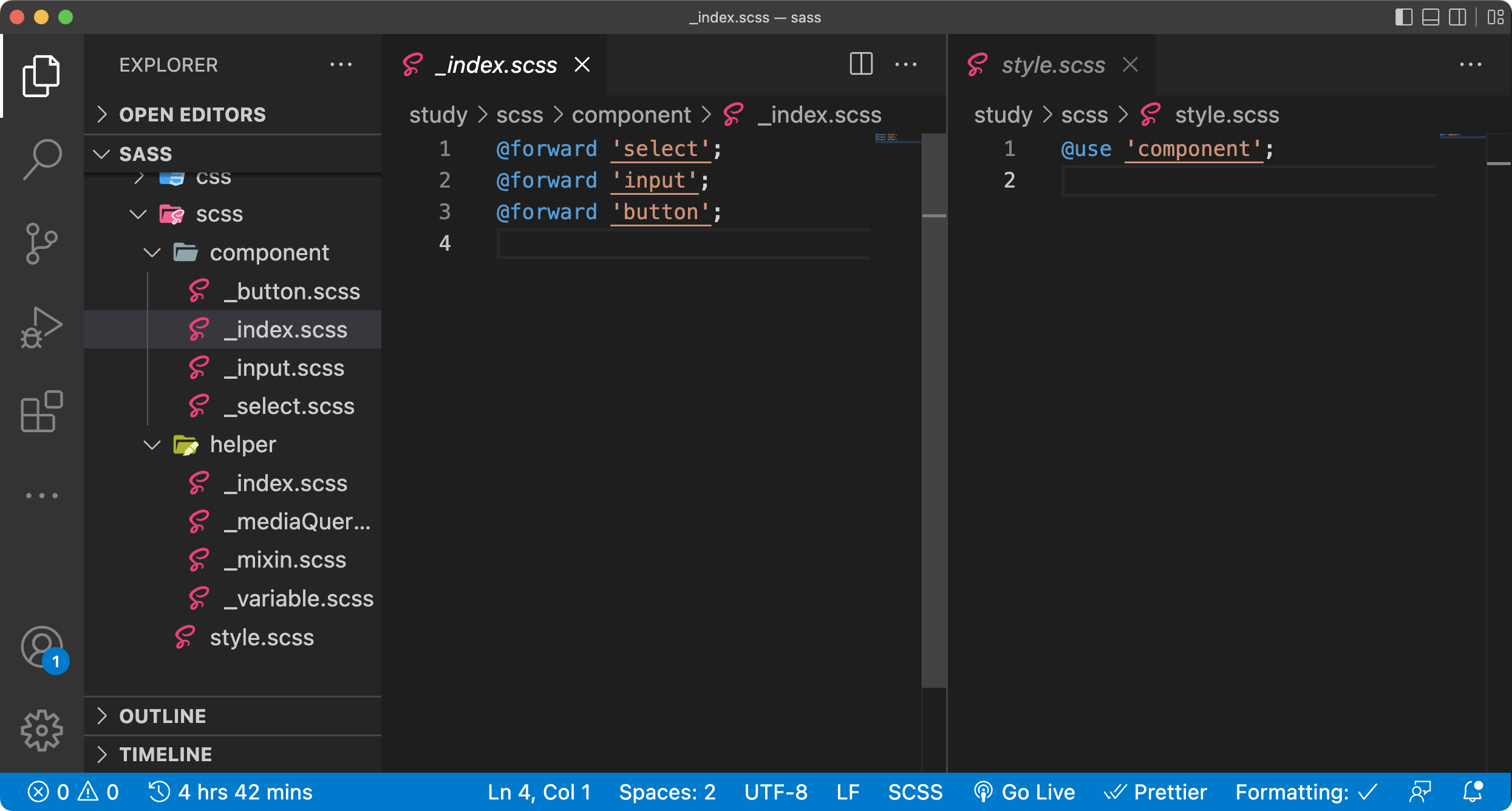 이런 식으로 component/ 폴더에도 _index.scss를 만들어 컴포넌트 관련 scss 들을 한번에 전달할 수도 있겠네요!