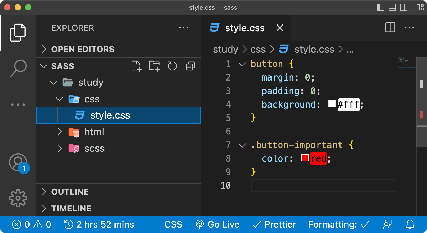 // _common.scss button {margin: 0; padding: 0; background: #fff;} // style.scss @import 'common'; .button-important {color: red;}