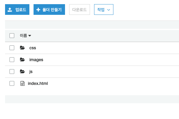 2. 기존 웹호스팅처럼 폴더를 만들고 그 안에 정적 웹사이트를 구성하는 파일을 업로드한다.