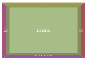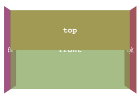 <div class="scene"> <div class="box"> <div class="box__face box__face--front">front</div> <div class="box__face box__face--back">back</div> <div class="box__face box__face--right">right</div> <div class="box__face box__face--left">left</div> <div class="box__face box__face--top">top</div> <div class="box__face box__face--bottom">bottom</div> </div> </div>각 면의 역할에 맞게 크기를 지정해주고, 크기 지정이 끝나면 absolute 시켜줍니다.