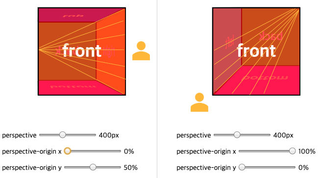 perspective-origin이 있습니다.이것도 마찬가지로 보는 사람이 어느 위치에서 보고 있는지를 나타내는 속성입니다.