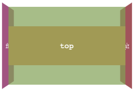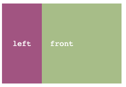 <div class="scene"> <div class="box"> <div class="box__face box__face--front">front</div> <div class="box__face box__face--back">back</div> <div class="box__face box__face--right">right</div> <div class="box__face box__face--left">left</div> <div class="box__face box__face--top">top</div> <div class="box__face box__face--bottom">bottom</div> </div> </div>각 면의 역할에 맞게 크기를 지정해주고, 크기 지정이 끝나면 absolute 시켜줍니다.