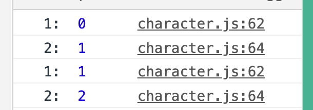 Character.prototype = { constructor: Character, console.log(this); //여기서의 this는 인스턴스 객체를 가리킨다 init: function() { window.addEventListener("scroll", function() { //... }); } };이벤트리스너 밖에서 this를 콘솔에 찍어보면 생성된 인스턴스 객체를 가리킨다는 걸 알 수 있습니다.