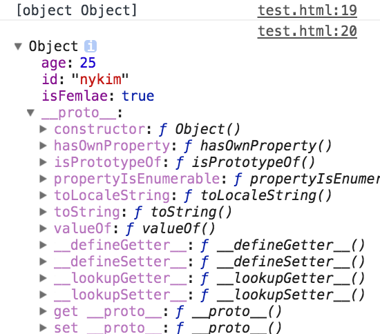 var me = { id : 'nykim', isFemlae : true, age : 25 }; console.log(me.toString()); console.dir(me);