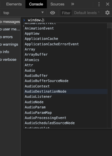 콘솔에 window. 라고만 쳐도 어마어마한 메서드 리스트가 출력되는 것이 보입니다.