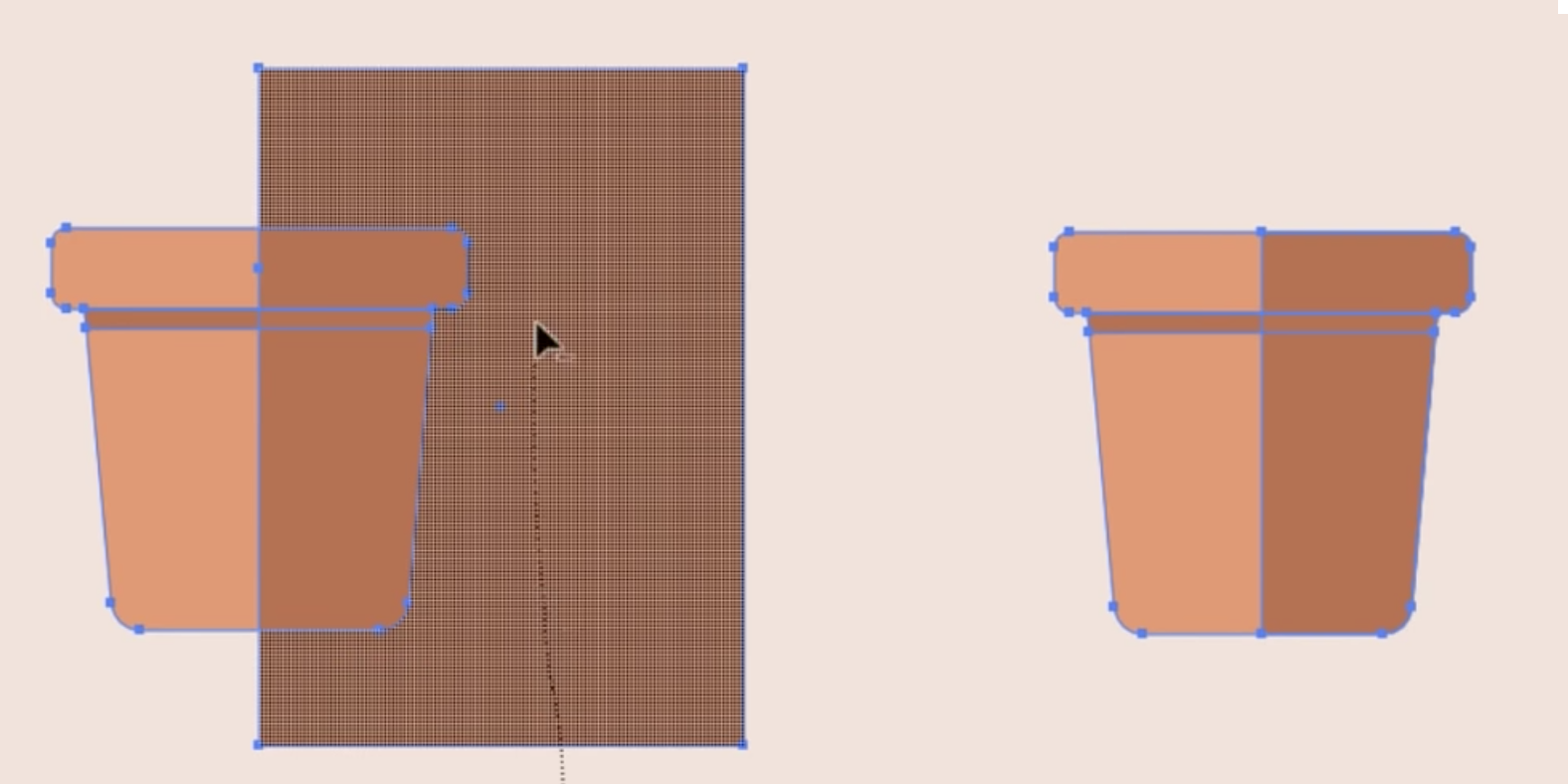 - 튀어나온 부분을 잘라내고 싶다면, 기본도형과 잘라낼 도형을 모두 잡는다.