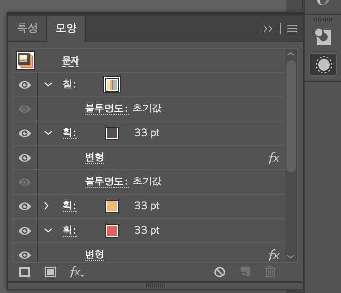 - 모양 탭을 누르면 칠과 획을 여러 개 추가하여 따로 관리하는 것도 가능하다.