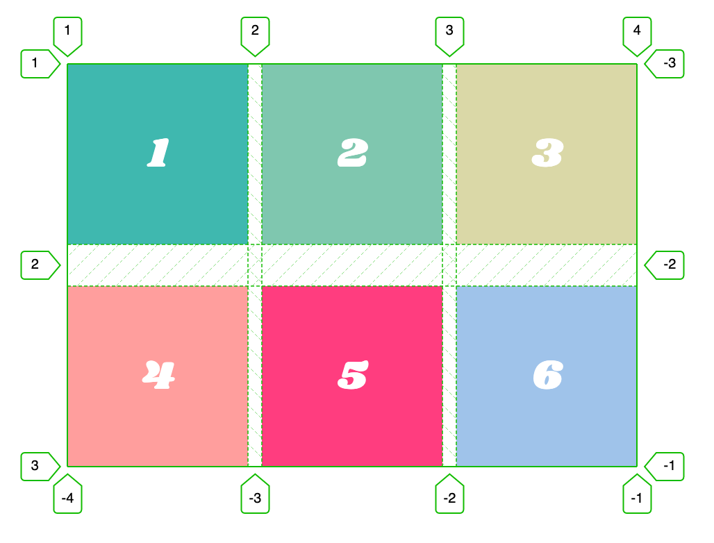 예를 들어, grid-column: 2/ 5; 는 start가 2고 end가 5입니다.