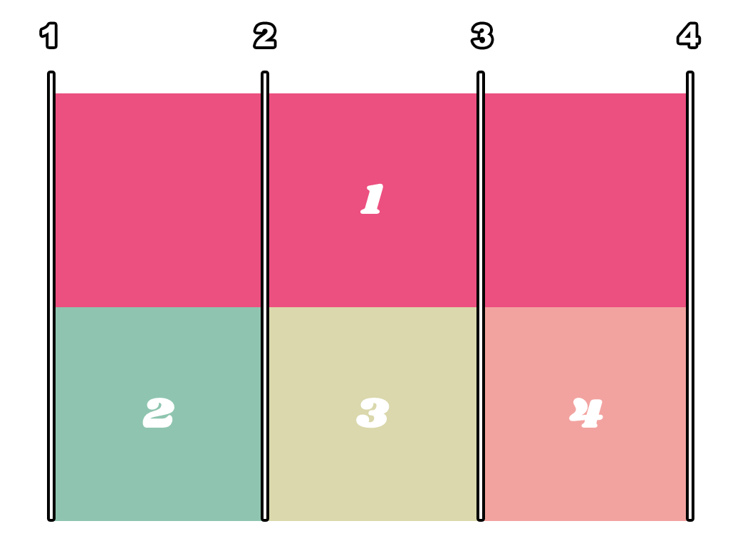 총 4개의 값이 들어가며, 순서대로 grid-row-start, grid-column-start, grid-row-end, grid-column-end를 지정합니다.