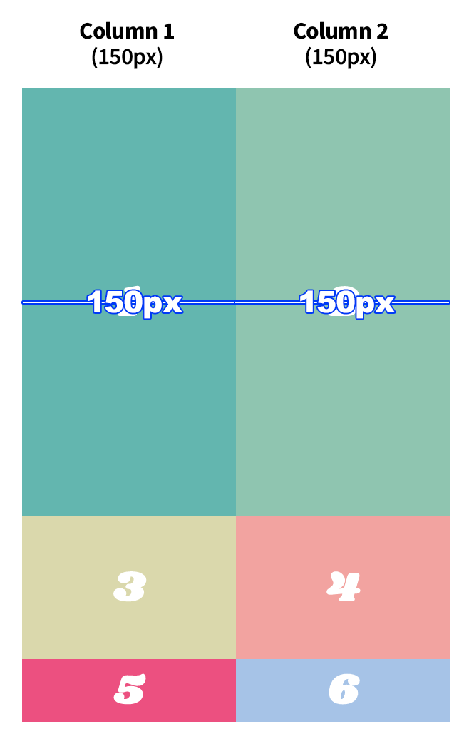 따라서 두 개의 column이 뿅뿅 생기겠죠. 그리고 첫 번째도 두 번째도 동일하게 150px이란 너비를 갖습니다.