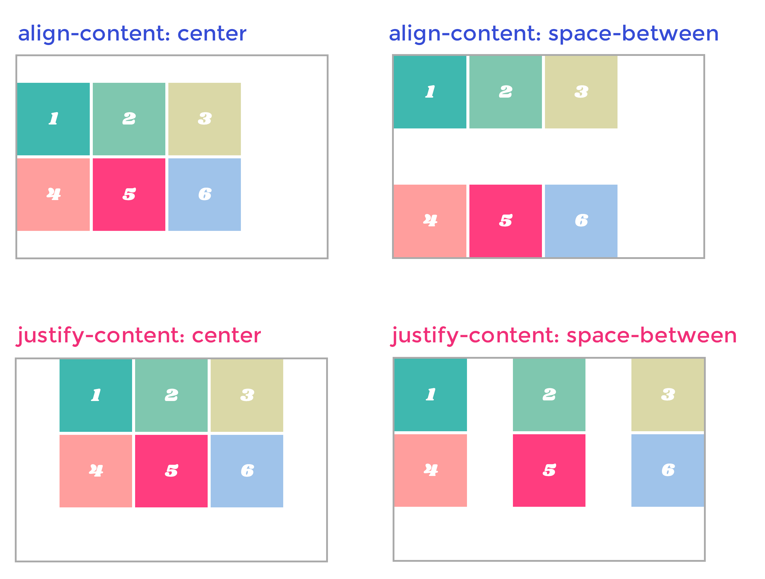 세로축으로 정렬하는 align-content와 가로축으로 정렬하는 justify-content까지 기능이 같습니다.