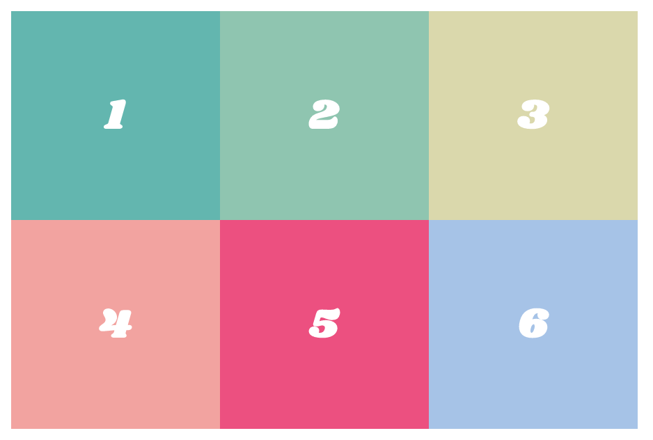 .container { display: grid; grid-template-columns: 150px 150px 150px; grid-template-rows: 150px 150px; }그러면 위 이미지처럼 아이템들이 격자 형태로 가지런히 놓인 걸 볼 수 있습니다. 뭔가 테이블 같군요!