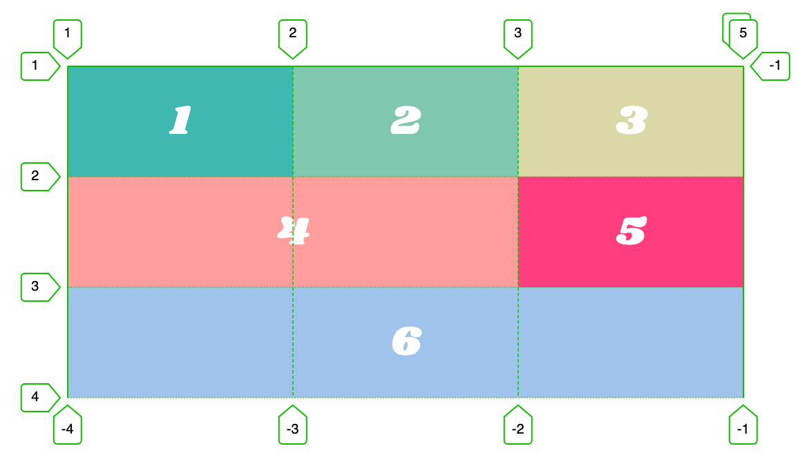 예를 들어, grid-column: 2/ 5; 는 start가 2고 end가 5입니다.