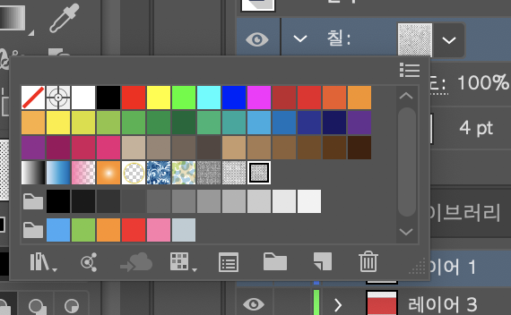 패턴이 될 이미지를 swatch(견본)에 넣어두면 손쉽게 사용할 수 있다.