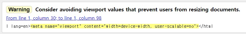 아래는 이걸 본 validator.w3.org와 lighthouse가 날린 경고장입니다 😞
