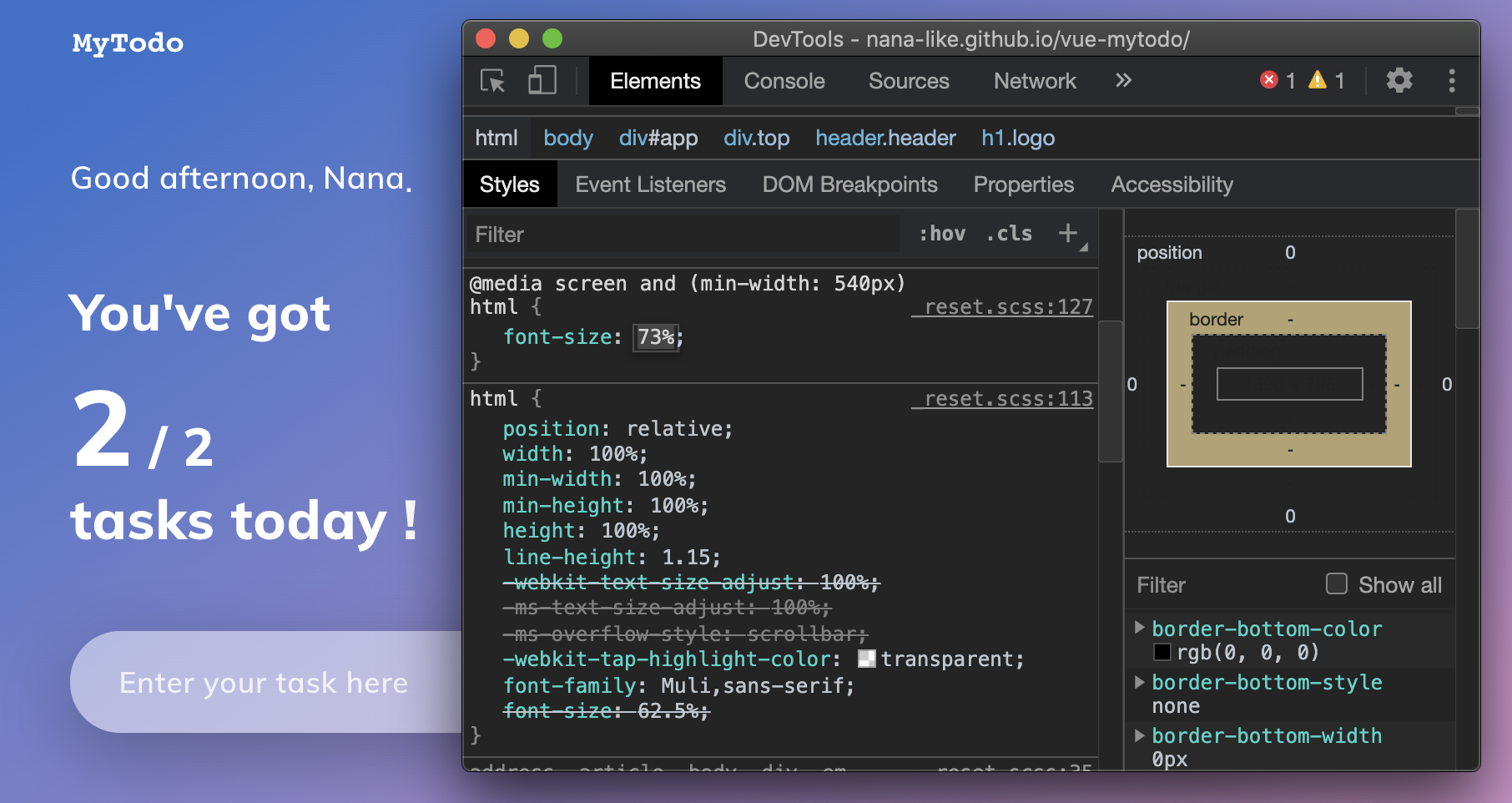 미디어 쿼리로 html 요소의 폰트 사이즈값만 바꾸면 모든 rem 단위에 영향을 줄 수 있다는 걸 알 수 있습니다.