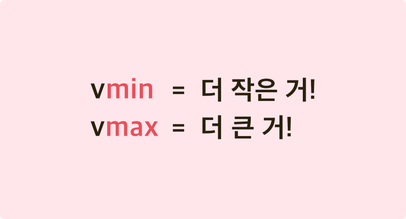 vmin은 vw와 vh 중 더 작은 것을 적용하고, vmax는 vw와 vh 중 더 큰 것을 적용합니다.