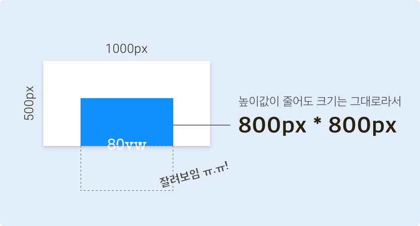 '80vw = 뷰포트 너비의 80%'으로 계산되므로 이 요소의 실제 크기는 800px * 800px입니다.