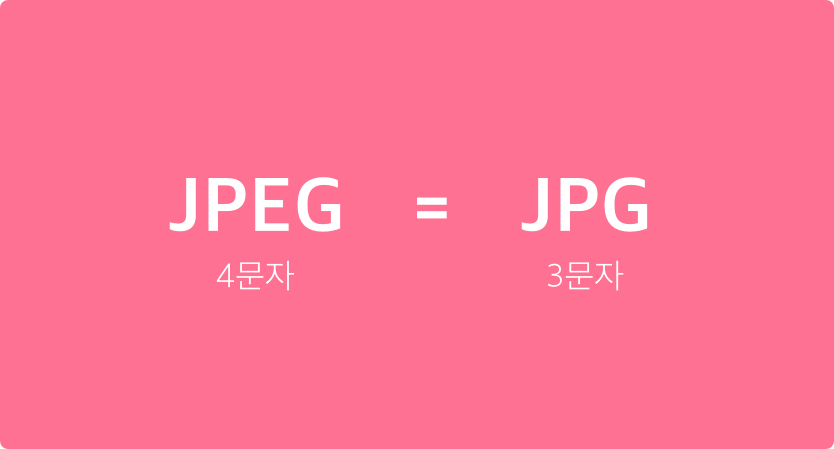 JPG = JPEG그러고보면 JPEG를 종종 JPG라고 줄여 부르기도 하던데요? 넵, 둘은 같은 말입니다!