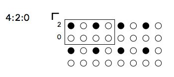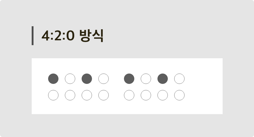 첫번째 행에서 2개의 크로마만 살려주고 두번째 행에선 0개의 크로마를 살려줍니다. (=4:2:0)