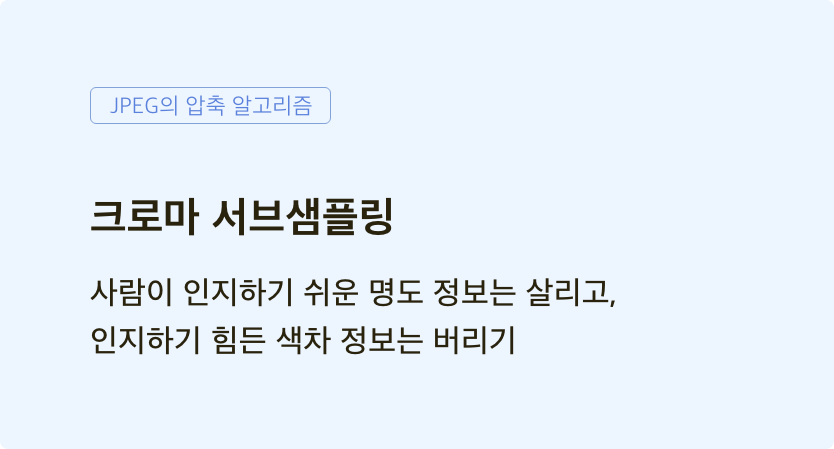 그럼 JPEG가 어떤 알고리즘으로 이미지를 압축하는지 짧게 훑어봅니다.