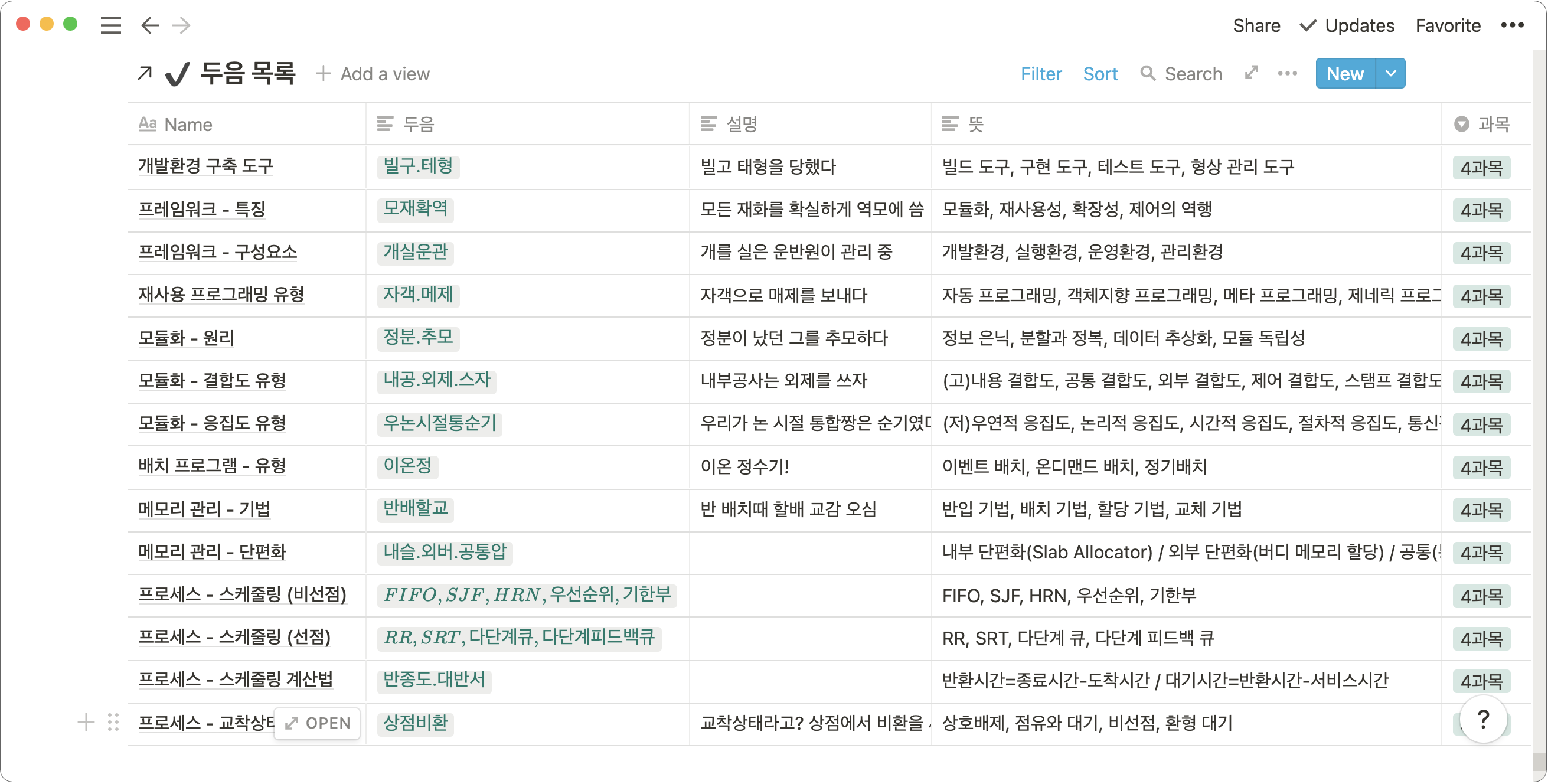 요약본 만들 때 이런 식으로 두음 목록도 만들어서 시간 날 때마다 훑어봤어요.처음에 이런 게 도움이 될까 싶었는데 시험볼 때 엄청 쏠쏠했습니다ㅎㅎ