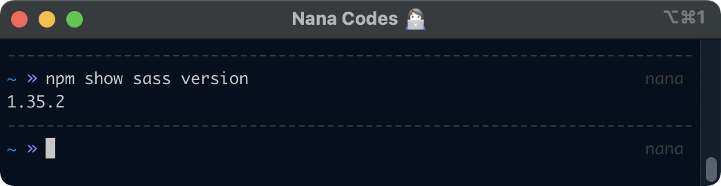 npm show sass version(= 매니저님 / 보여줘요 / sass의 / 현재 버전을)