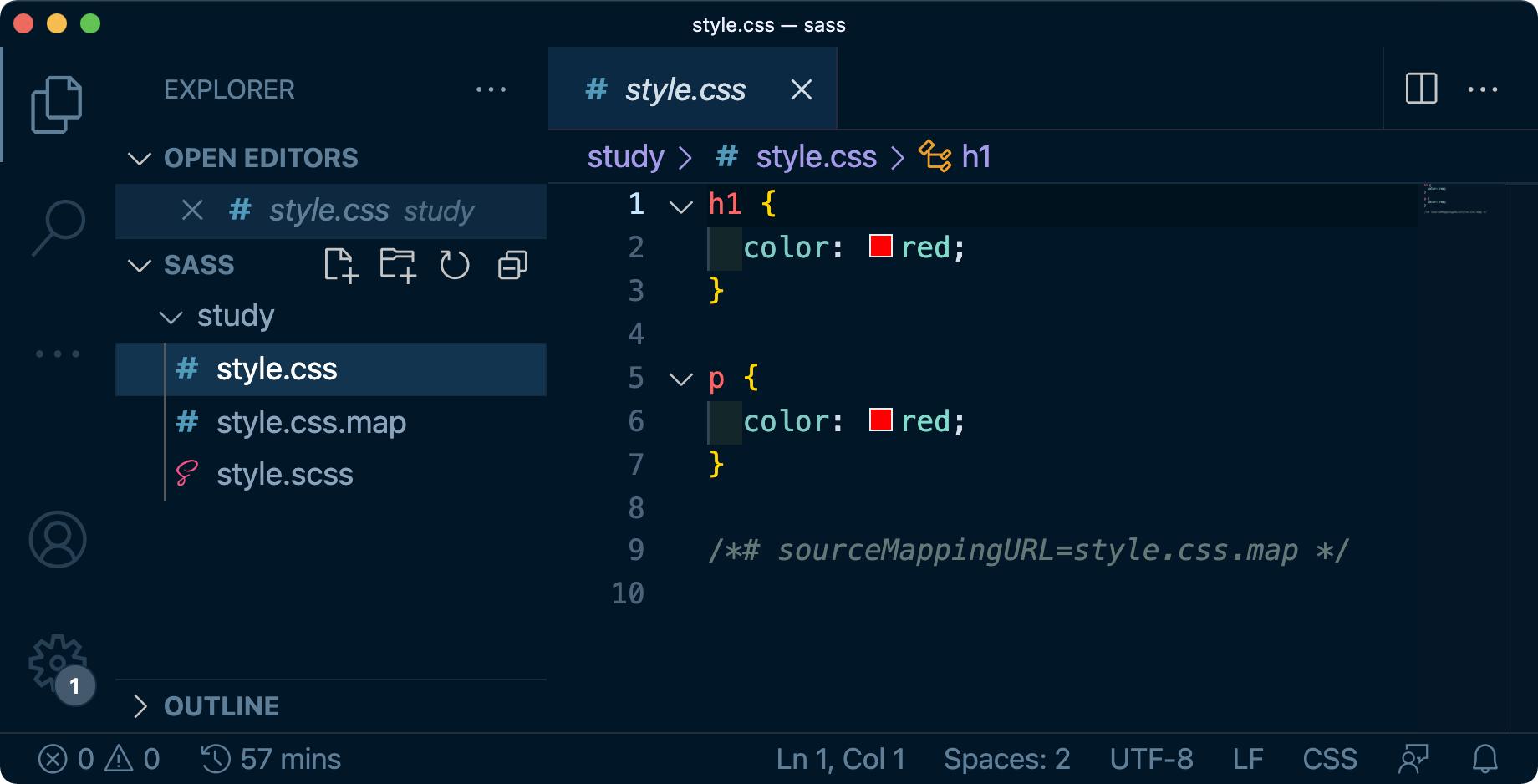 그리고 다시 아까 명령어를 쳐준 뒤 CSS 파일을 확인합니다.