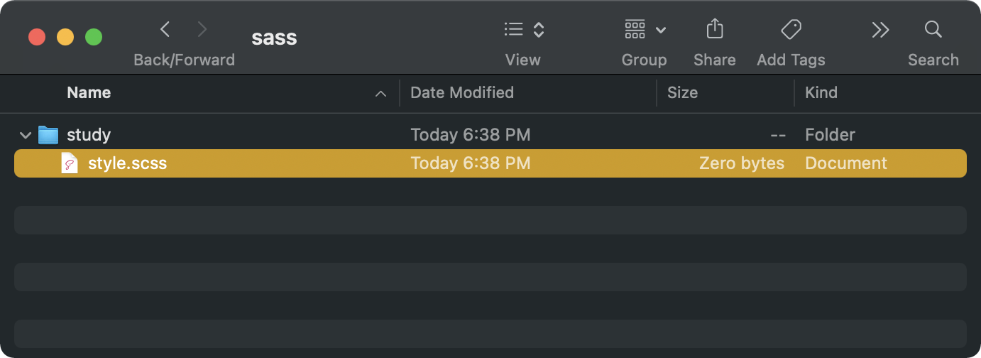 우선 빈 폴더 안에 style.scss 파일을 만듭니다.